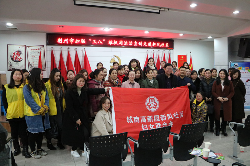 3月8日下午,荆州市妇联在荆州区城南高新园新风社区,开展“三八”维权周法治宣讲活动。社区党委书记张远峰主持,市妇联党组成员、副主席王瑛出席活动,并向社区姐妹致以节日祝贺。