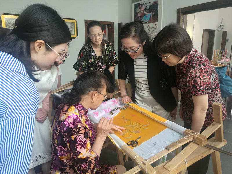 随后,程朝蓉一行参观了荆楚非遗传承院。湖北福楚光华电商创业园总经理胡妙华为妇女开展一对一的培训,受训妇女纷纷表示这种简单易懂的手工培训很好,很适合她们在家做,照顾家人的同时又能增收致富。来自长江大学艺术学院礼仪队的美丽姑娘们为大家带来了精彩的手工作品展示。